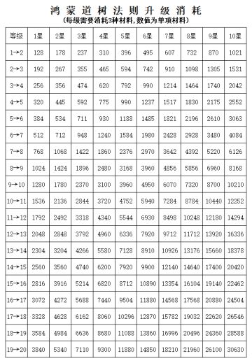 鸿蒙道树法则升级消耗。