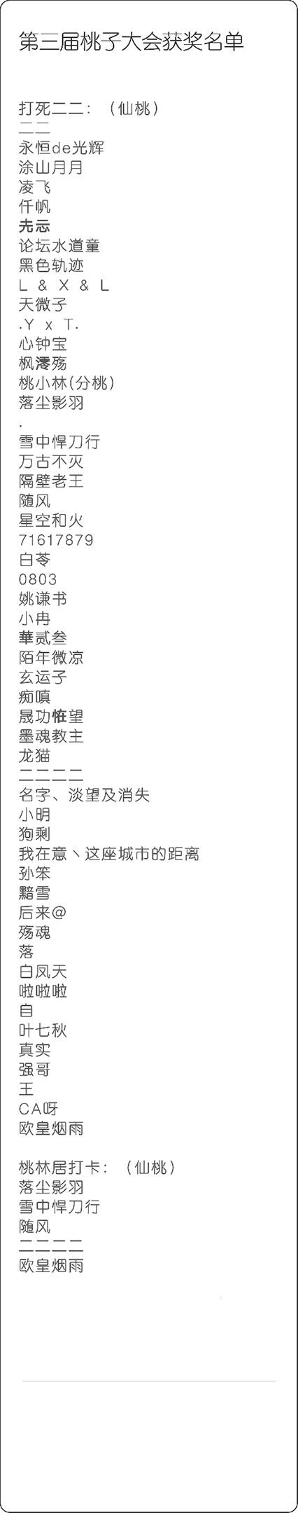 第三届桃子大会获奖名单