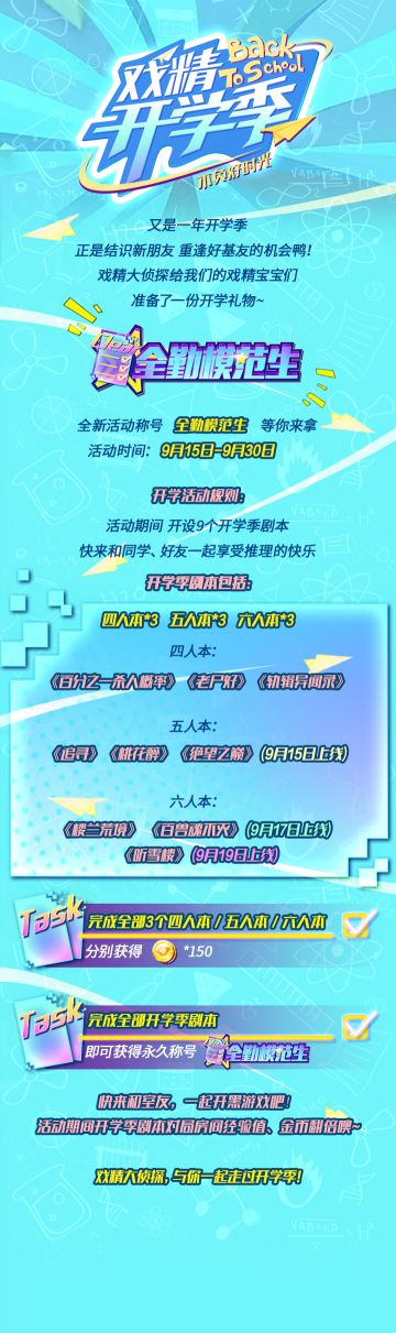 【戏精大侦探™】九月开学新活动,争当全勤模范生!