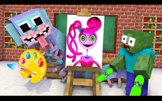 怪物学院动画:Baby怪物PJ与Pillar Drawing Challenge丨我的世界动画 Poppy playtime动画 波比的游戏时间动画