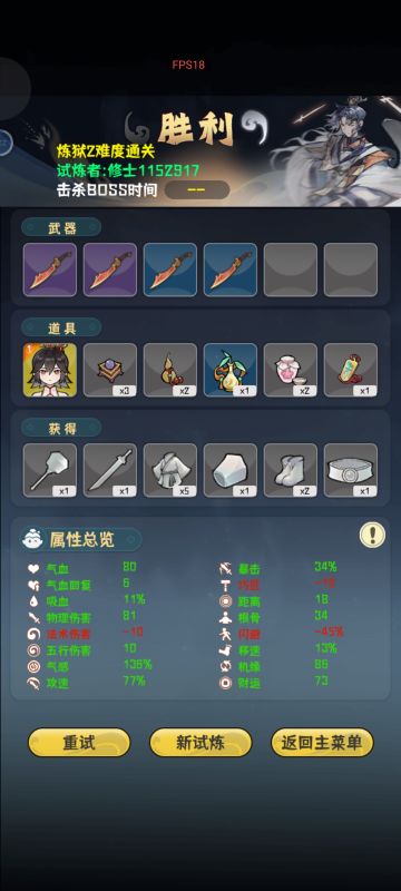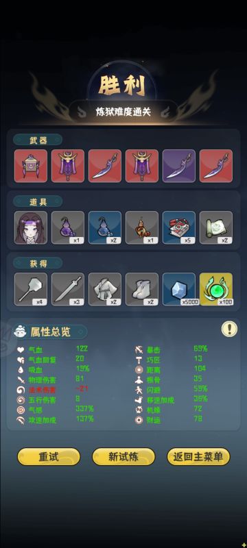 武器选高频伤害的,方便触发犯病白嫖气感,推荐金灵珠和魔炎葫芦 狂堆攻速,方便触发白嫖 击退道具比较关键,可以让20关boss摸不到你