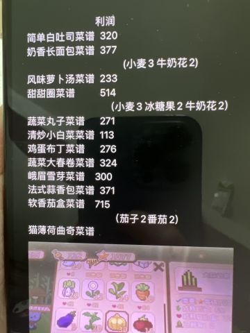 { "text": "赚钱攻略\n前期种白萝卜就够了!最赚钱 时间少\n中期可以试着做菜谱的菜赚钱 详细看图(菜谱可通过许愿山石出 看脸)\n以下是我现有菜谱 利润已经算出来了中期可以做奶香长面包或者甜甜圈\n之后可以做软香茄盒 (利润715笑哈哈)\n(●'◡'●)", "raw_text": "" }