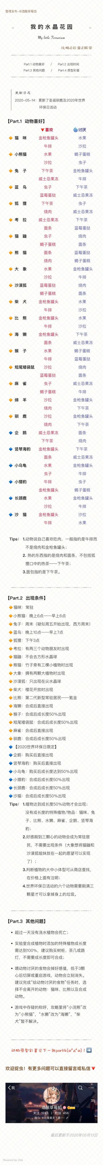 毕业撒花✧*。٩(ˊωˋ【全攻略】动物对应的食物与出现条件