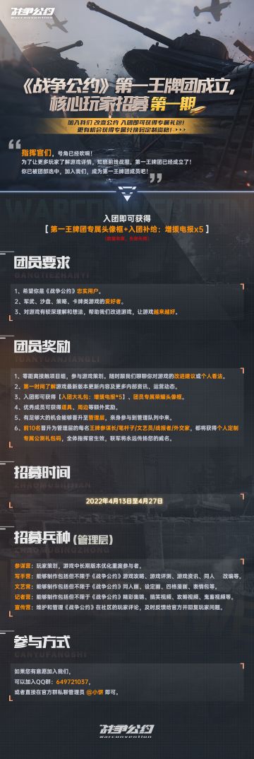 《战争公约》第一王牌团成立,核心玩家招募!第一期