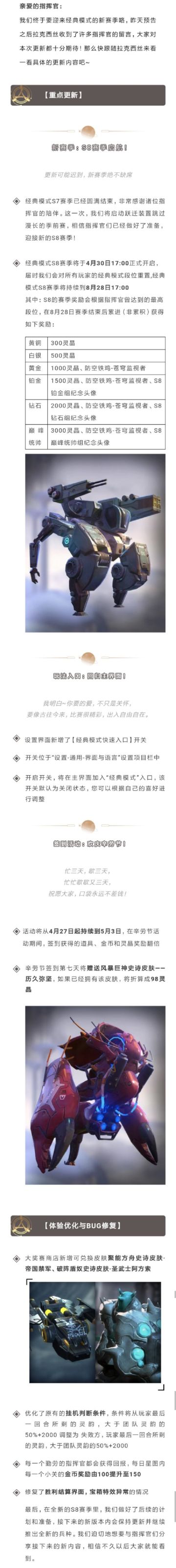 4.23更新预热 | 经典模式S8赛季开启