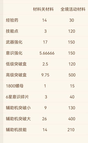 活动本耗材与体力的换算&可支配体力/战区币的计算