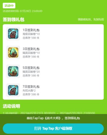 【战术大师】7月21-7月28日签到活动