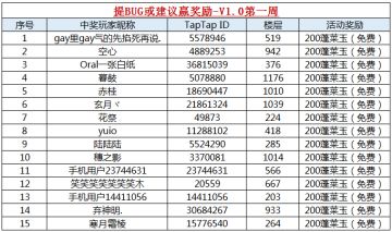 【获奖名单】提BUG或建议赢奖励-V1.0第一周