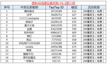 【获奖名单】提BUG或建议赢奖励-V1.1第八周