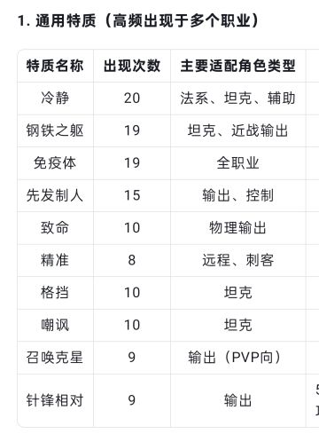 热门特质排行