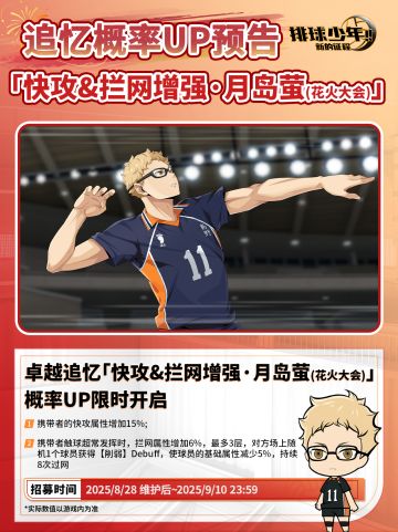 球员技能介绍|月岛萤(花火大会)8月28日登场!
