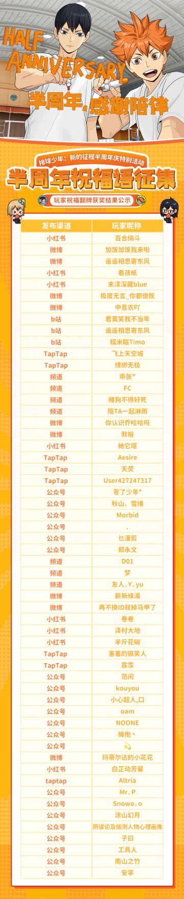 半周年庆祝福语征集 | 获奖公示