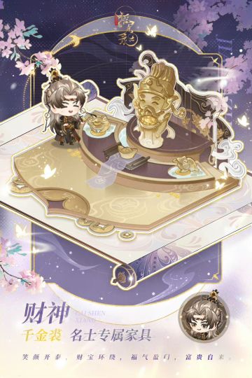 【「财神·千金裘」| 专属家具展示】 笑颜开泰,财宝环绕,福气盈门,富贵自来。 4月17日5:00-4月30日23:59,「财神·千金裘」专属家具将限时上架行宫装扮系统,公主可在【行宫商城】中使用「天工匣」道具购买。 *本次活动结束后,「财神·千金裘」将无法通过[玲珑阁-特惠家具锦匣]获取。