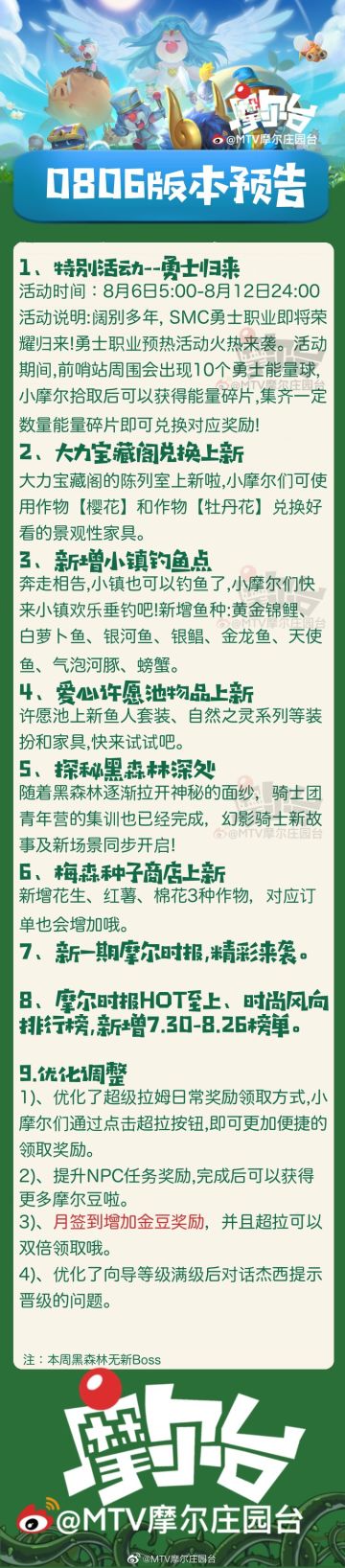 《摩尔庄园》9月27日版本更新公告