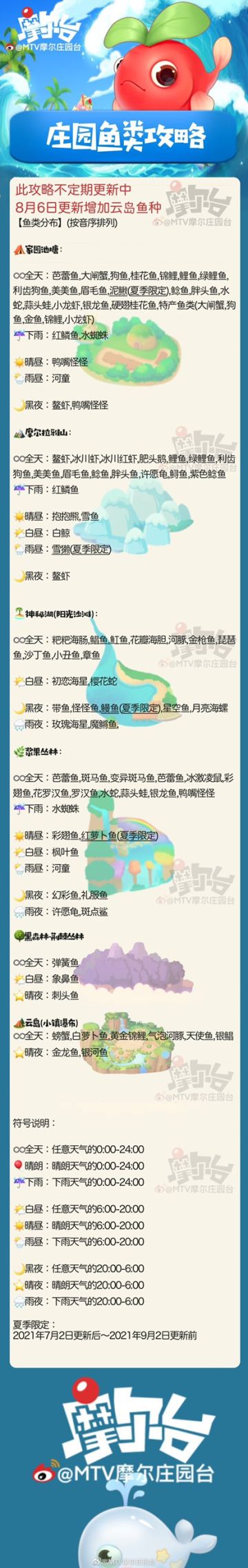 【摩尔庄园钓鱼全攻略】云岛(小镇瀑布)新增鱼类