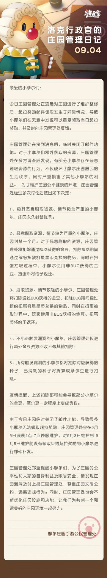 封禁公告 | 9月4日洛克行政官的庄园管理日记