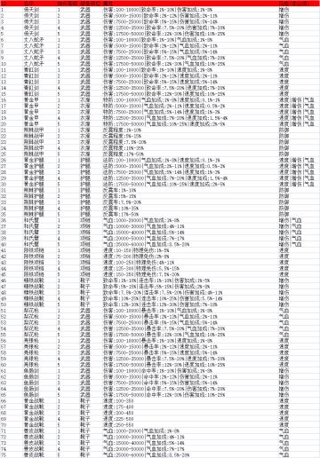 神兵仙器属性图鉴