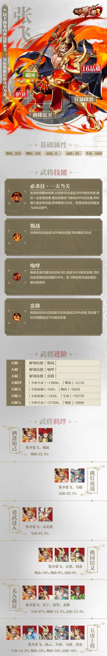 武将图鉴☆《放开那三国3》蜀国「张飞」技能属性羁绊介绍