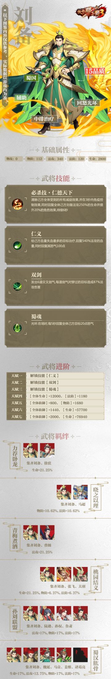 武将图鉴☆《放开那三国3》蜀国「刘备」技能属性羁绊介绍