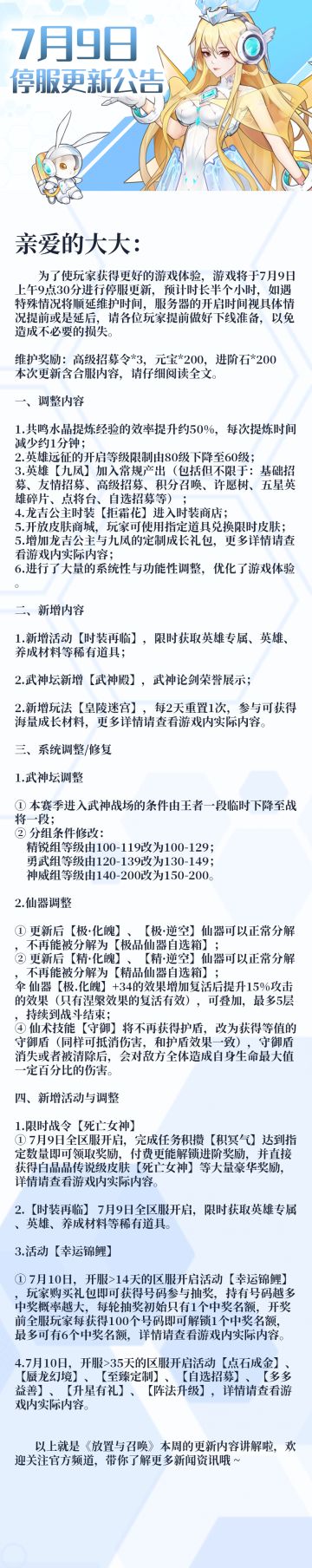 【维护通知】《放置与召唤》1月5日更新内容