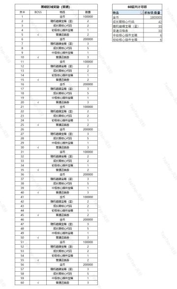 { "text": "记录了下普通黑暗区域的通关奖励,希望可以帮到大家~(如果有想看困难奖励的小伙伴可以给我留言,有空再出个困难版本的)\n60层一共获得:\n金币*1800000,成长期核心代码*42,随机磁碟宝箱(蓝)*30,普通召唤券*30,中级核心插件宝箱*6,初级核心插件宝箱*6\n(这样看还是困难的高级插件宝箱香一点)", "raw_text": "" }