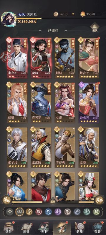 阵容备注 标准气: 李存礼『监国』『气宗』 【监国】【二绝】 袁天罡『不良』『气金』 【天罗】【一绝】 惠明 『不良』『金刚』 【飞鱼】【二绝】 张子凡『天师』『气宗』 【巫祖】【二绝】 张玄陵『天师』『气宗』 【五行】【一绝】 梵音天『幻音』『气宗』 【梵音】【一绝】 妙成天『幻音』『辅助』 【破魔】【一绝】 女帝 『幻音』『气宗』 【修罗】【一绝】 标准巫: 候卿 『尸祖』『巫师』 【幻龙】【