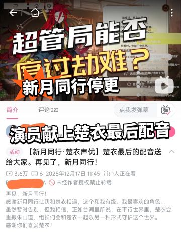 新月同行停更 演员献上楚衣最后配音