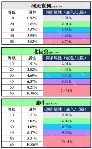 1~3代宠物等级属性及各洗练底色属性整理