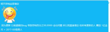 { "text": "由于技术不到位,导致更新后出现了很多问题,这里说一句抱歉了,已经更新最新版 存档错误的 可进群 获取兑换码 获得50个商人 以及100w金币", "raw_text": "" }