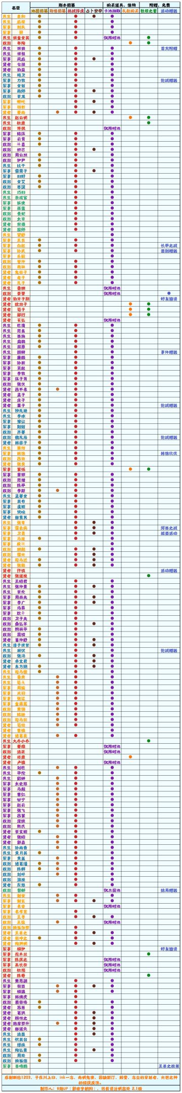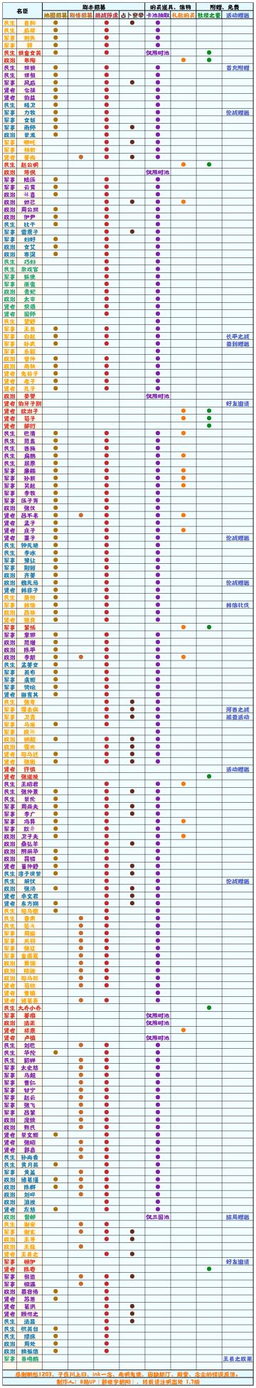 【无悔华夏】名臣获取补充表1.9