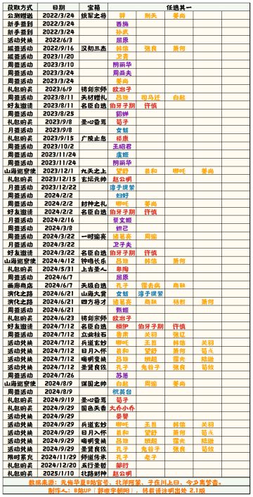 【无悔华夏】历次卡池表 1.4