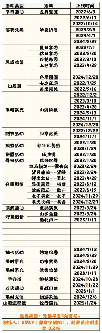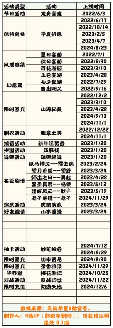 【无悔华夏】活动历史排期表(半成品)
