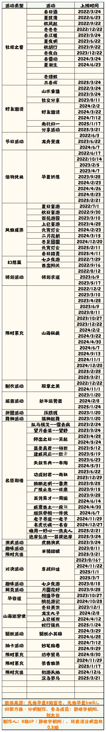 活动历史排期表(半成品)