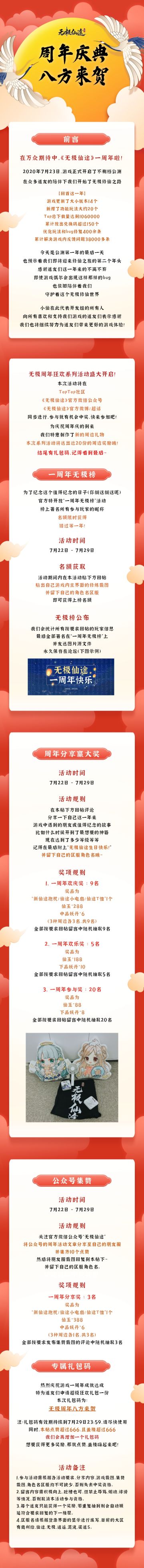 【周年庆典】无极周年八方来贺,仙途送礼榜上有你!(内含礼包码)