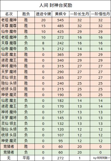 仙魔战场-封神台 奖励明细
