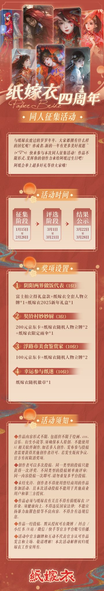 纸嫁衣四周年征集活动开启!门槛超低,奖励超多,阿纸等你来哦~