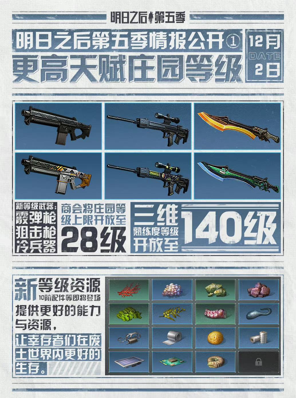 明日之后第五季情报公开第一弹:更高天赋庄园等很|