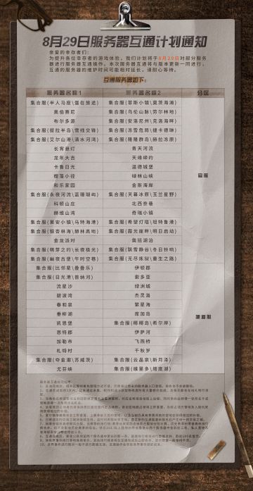 8月29日和9月12日服务器互通计划通知