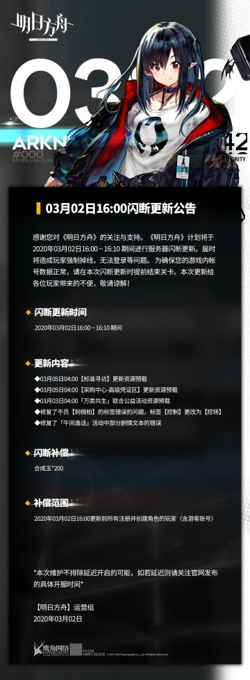 3月2日16:00闪断更新公告