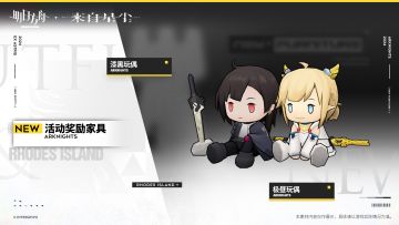 【明日方舟 x 来自星尘】活动奖励家具预告 //极昼玩偶 "不知何时出现在此处的卡通玩偶,有着如太阳般的朝气。 ‘她’见到你,你们就差不多是朋友啦。打个招呼吧?" //漆黑玩偶 "不知何时出现在此处的卡通玩偶,有着如夜晚般的冷峻。 ‘她’好像不太开心,或许你能试着和‘她’交个朋友?"