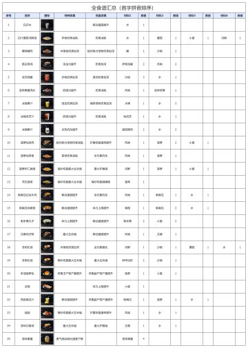太空版本「259烹饪食谱」整理(游戏内图鉴顺序)