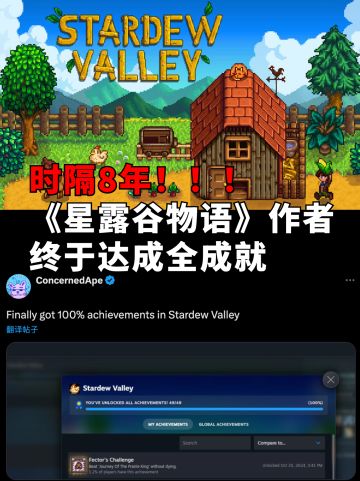 用了整整8年《星露谷物语》作者达成全成就