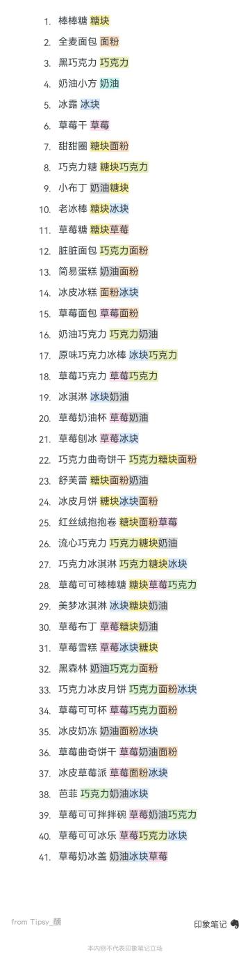晚安森林 食谱攻略