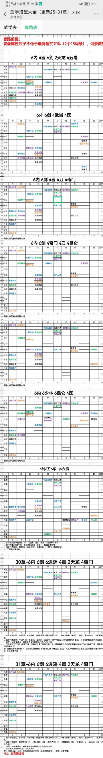 { "text": "【远征200关全满星技能搭配攻略】 \n 经过和Taper在评论区讨论后,修改了部分升级顺序能够在197关实现全满星。\n ①技能全部点一遍凑羁绊; \n ②图中画勾的16个功法全程只点一星,后续联动会自动升到三星,大幅节约技能点;\n ③以内功为切入点:【乾坤阵法】达到3级后所有内功升1星,内功达到3星后,所有门派升1星,门派达到3星后,门派阵法所对应的外功、轻功、枪法升1星。如图,红线以上,所有武功全部升到2星后(画勾的只升1星 ),将乾坤阵法升3星,之后发生联动,我们会得到36个3星和8个2星,这将是一个质的飞跃!!(这里解释一下为什么会有8个2星,原因是发生联动后 ,对应门派的武功升星,红线以上的2星升3星(画勾的直接1星升3星),红线以下画勾的8个是1星升2星,那为什么不把这8个先升到2星再升满乾坤呢?原因看④; \n ④以阵法为带动点:满足上述的要求后,我们优先选择升级剑法,因为有4个2星的是属于剑法,当【七星阵法】升到3星后,所有剑法升1星,也就是说【乾坤阵法】带动的4个剑法不需要升2星,我们只需要把全真剑法和逍遥剑法升到2星后,点满七星阵法,我们又会得到7个3星,属于小投资大回报。(这里也解释了为什么画勾的不升2星的原因,简单的说就是双联动,乾坤阵法联动升2星后,七星阵法又联动升3星。同理,我们得到画勾的16个满级技能只需要16个技能点!)之后就是【四象阵法】和【风雷阵法】的联动,我们又会分别得到8个3星和8个3星; \n ⑤以其他为收尾点:此时我们应该到162关了。如图,这里有两个选择,选择一:按照【岐黄之术】【板蓝根术】【偷天换日】【天绝地灭】【醉逍遥】的顺序逐个升3星。选择二:把5个没有联动的技能全部升2星后,再陆续按照上面的顺序升3星,建议选择二; \n ⑥按照我的方法,64个功法全3星是没有问题的。本来要做个电子版,怕大家看不懂,所以手抄了一份,也没敢写连笔字,应该看得懂吧,打印出来,每升一个2星画一个勾,1星升3星的我已帮你们打好勾了,So easy!", "raw_text": "" }