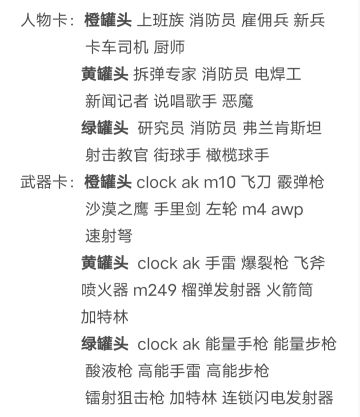 { "text": "以下是更新后三种罐头可以兑换的武器卡和人物卡。武器卡推荐兑换clock,能量手枪,手雷,(如果你用全手枪阵容的话还推荐爆裂枪)人物卡推荐兑换射击教官和三傻(卡车司机、说唱歌手、街球手)也可以兑换恶魔和橄榄球手但是这俩很难换😂。如有错误欢迎勘正😬。\n还有我现在用的主力阵容推荐一下,三傻主点1技能,警察主点的2技能次点4技能,教官主点4技能其余3个技能看情况切换,劫匪和教官一样主点4技能其余3个技能看情况切换。欢迎大家交流阵容🙋", "raw_text": "" }