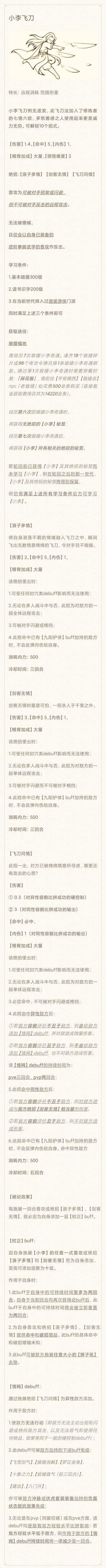 省流:小李多刃飞刀 极更新后不能免疫韧性