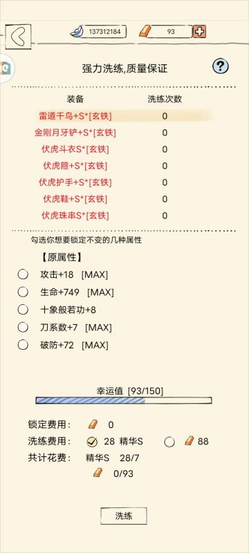 整理下装备洗练属性
