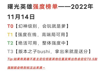 曙光英雄——强度排行榜【01篇】