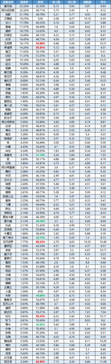 一周英雄榜单 | 艾璐妮热度再次提升,图坦卡蒙“一日游”,白泽ban率突破50%!