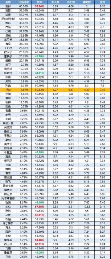 一周英雄榜单 | 飞廉最会“捞金”,刘备登场率明显提升